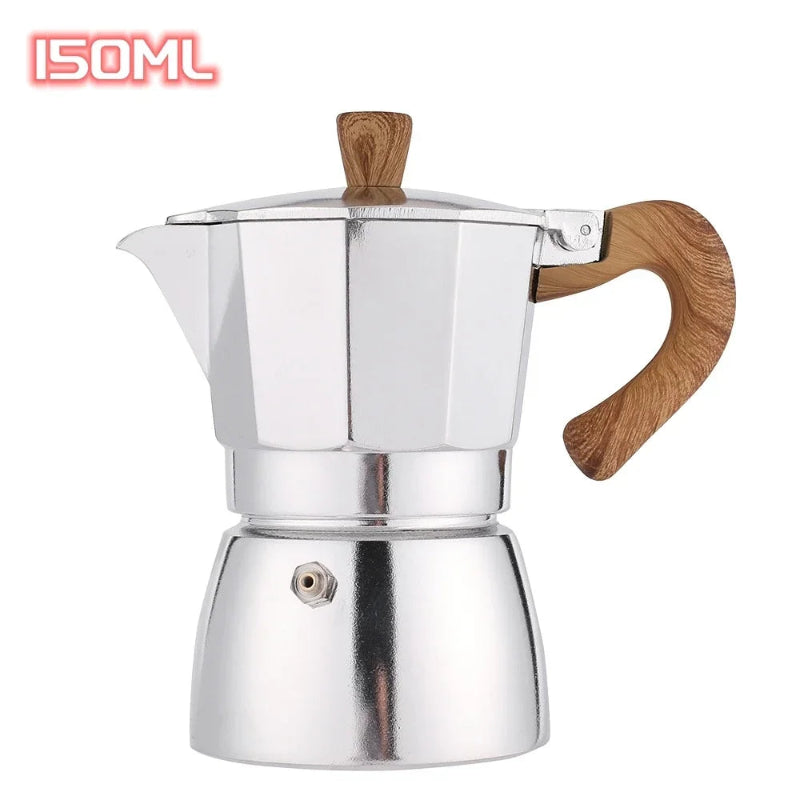 Les personnes qui apprécient un look plus chaleureux peuvent découvrir la cafetière moka en aluminium et bois, une alternative au modèle inox tout en conservant l’intensité et le rituel du café à l’italienne.